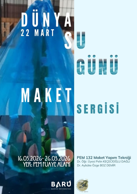 Dr. Öğr. Üyesi Pelin KEÇECİOĞLU DAĞLI ve Arş. Gör. Dr. A. Özge BOZ DEMİR yürütücülüğündeki PEM 132 Maket Yapım Tekniği dersi kapsamında "22 Mart Dünya Su Günü" konsepti ile maket çalışmaları yapılmıştır. Maketler, 16-26 Mart 2026 tarihleri arasında PEM Fuaye Alanı'nda sergilenecektir. İlgi duyan herkesi bekleriz.
